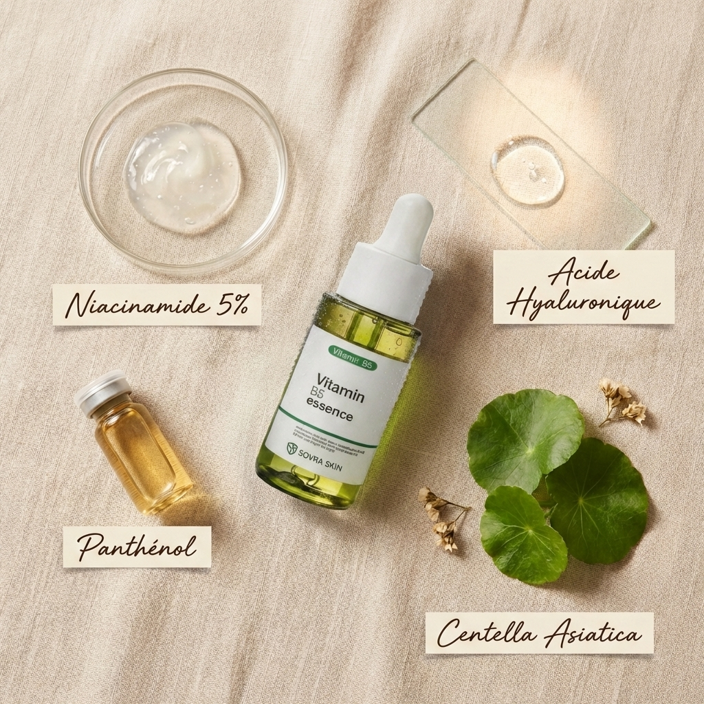 → Niacinamide — renforce la barrière cutanée, réduit les rougeurs visibles